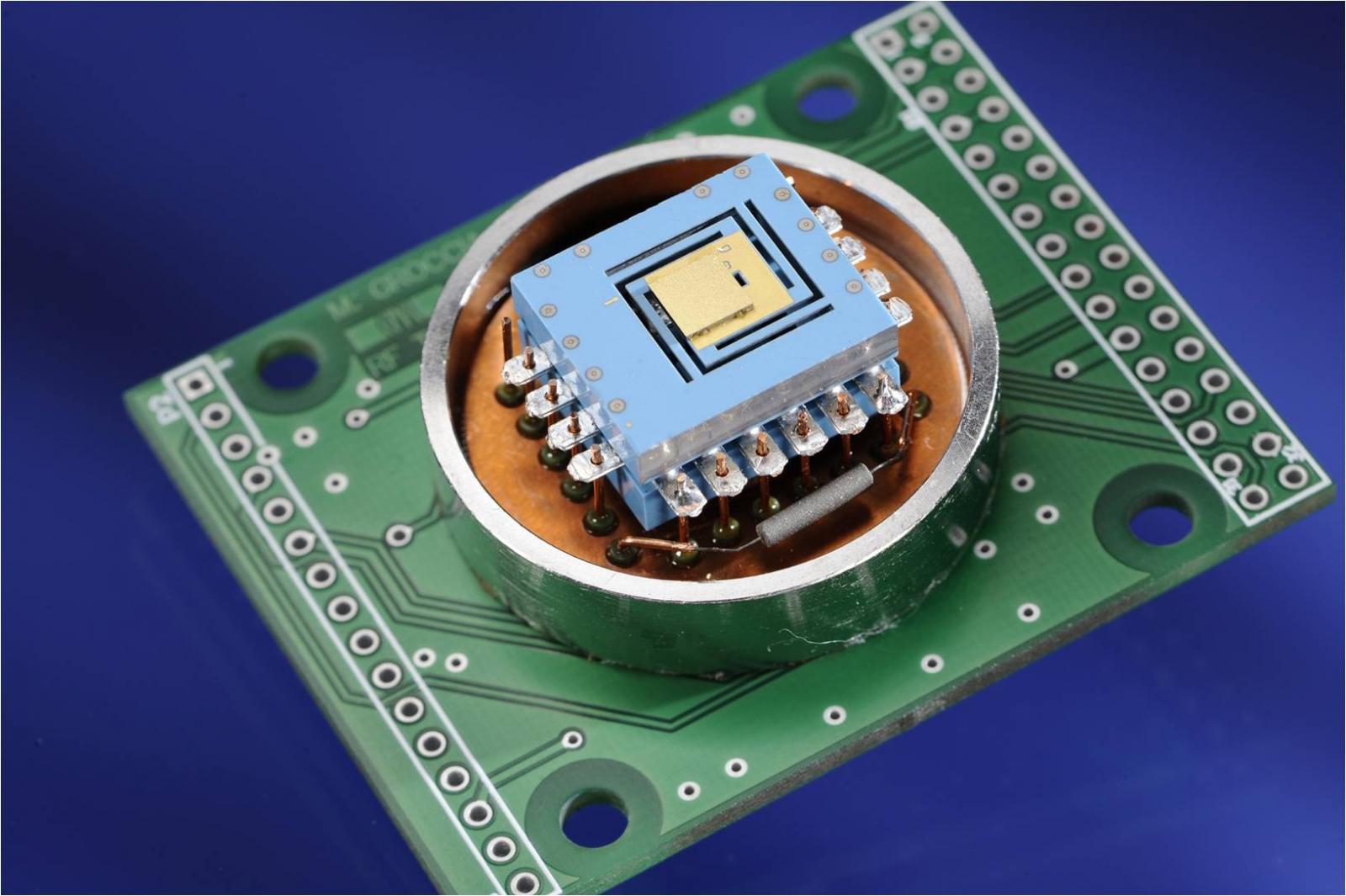 Figure 8 shows a microcell-based compact atomic clock physics package developed in the frame of the MAC-TFC project. Figure 9 shows this physics package embedded onto the pilot electronics card (developed by EPFL).