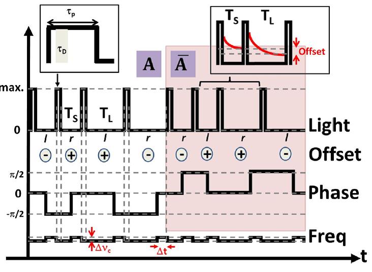 In 2019, we contributed to the demonstration of variants of the ABR method, including Ramsey spectroscopy with Displaced Frequency Jumps [40] and the Combined Error Signal spectroscopy technique [37,41]. These two methods, demonstrated at NIST, are attractive alternatives for the mitigation of light-shift effects.
