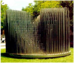 Fig. 1 – Une sculpture sonore d'Eusebio Sempere. Les cylindres d'acier d'un diamètre de 2,9 cm sont espacés périodiquement de 10 cm suivant un réseau carré. L'ensemble présente des bandes interdites pour les ondes sonores autour d'une fréquence de 1670 Hertz.